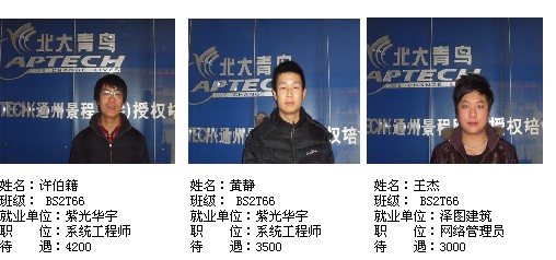 在剛剛過去的三月份,是人才市場最火爆的高峰期。當大學里的“天之驕子”們開始為就業奔波忙碌的時候,北大青鳥通州校區三月份的畢業學員,卻已經輕輕松松的開始了他們的職場生活。